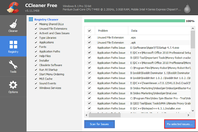 - Now the tool will start scanning for registry issues, After it’s completed click on Fix selected issues.