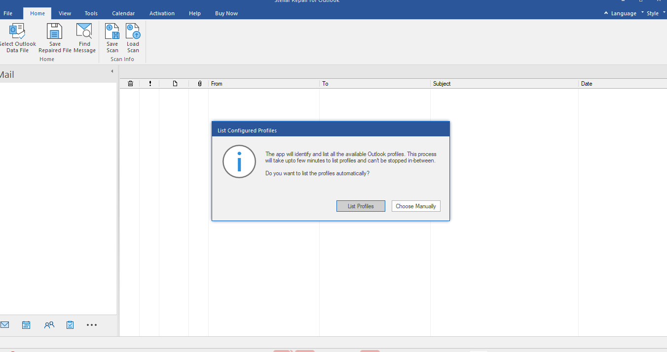- Click List Profile. This will list the PST files associated with your profile. Or use the “Choose Manually” option to manually select the file.