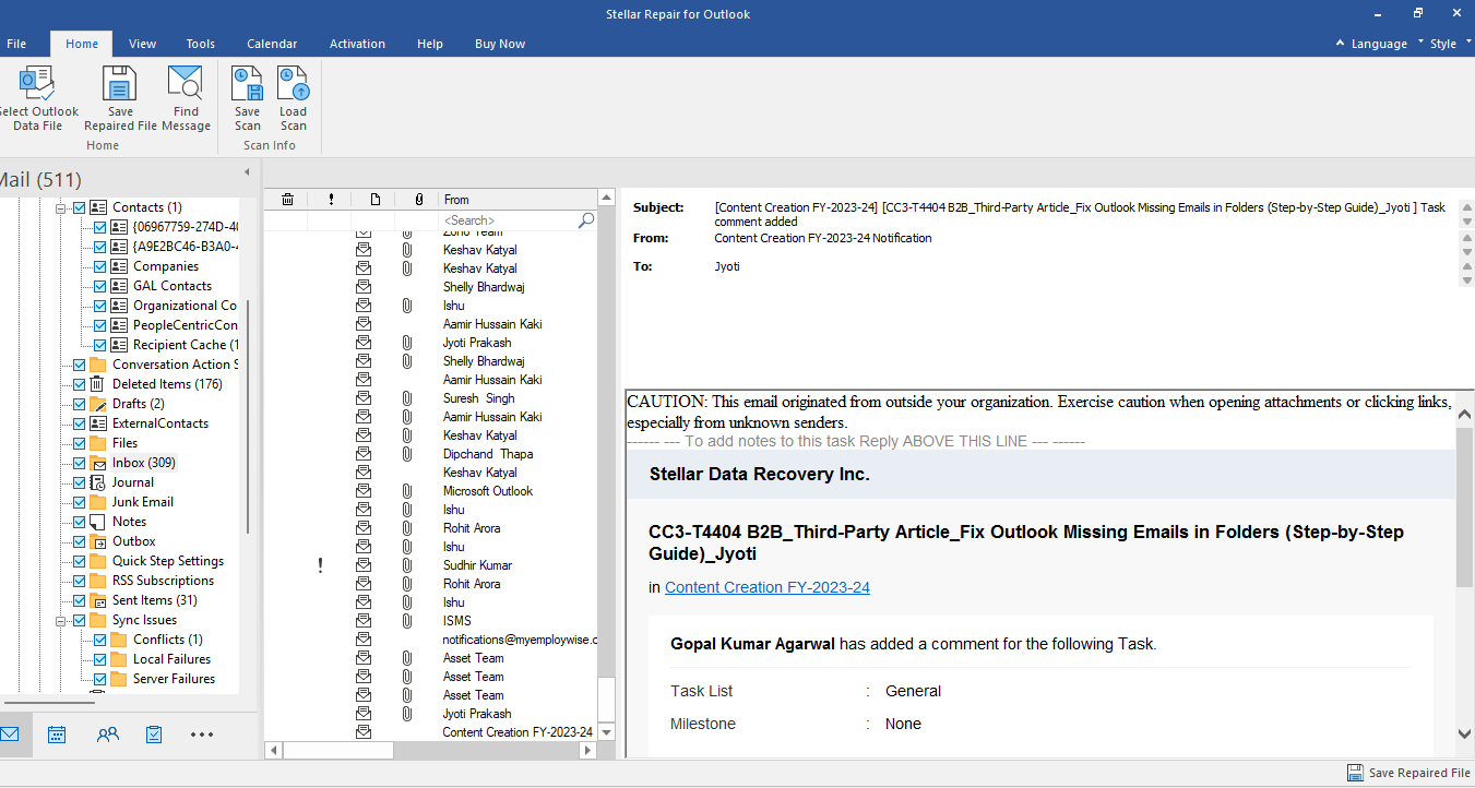 ScanPST often requires multiple runs if your PST file is severely damaged. At times, the utility can cause structure damage and data loss. To prevent such damage and data loss, you can use a professional PST repair tool, such as Stellar Repair for Outlook. This tool works in read-only mode.This means it doesn’t impact the original PST file. It can repair highly corrupted PST files of any size with complete data integrity and by maintaining folder structure and hierarchy.