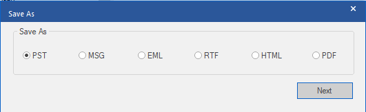 - Choose your preferred format (PST, MSG, EML, etc.) and then click on Next.