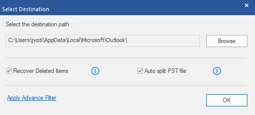 - Click on Browse to select a desired folder where you want to save your repaired PST file.