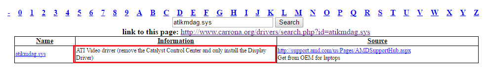 - Now search for the driver file name which was displayed in the error. For Ex – atikmdag.sys